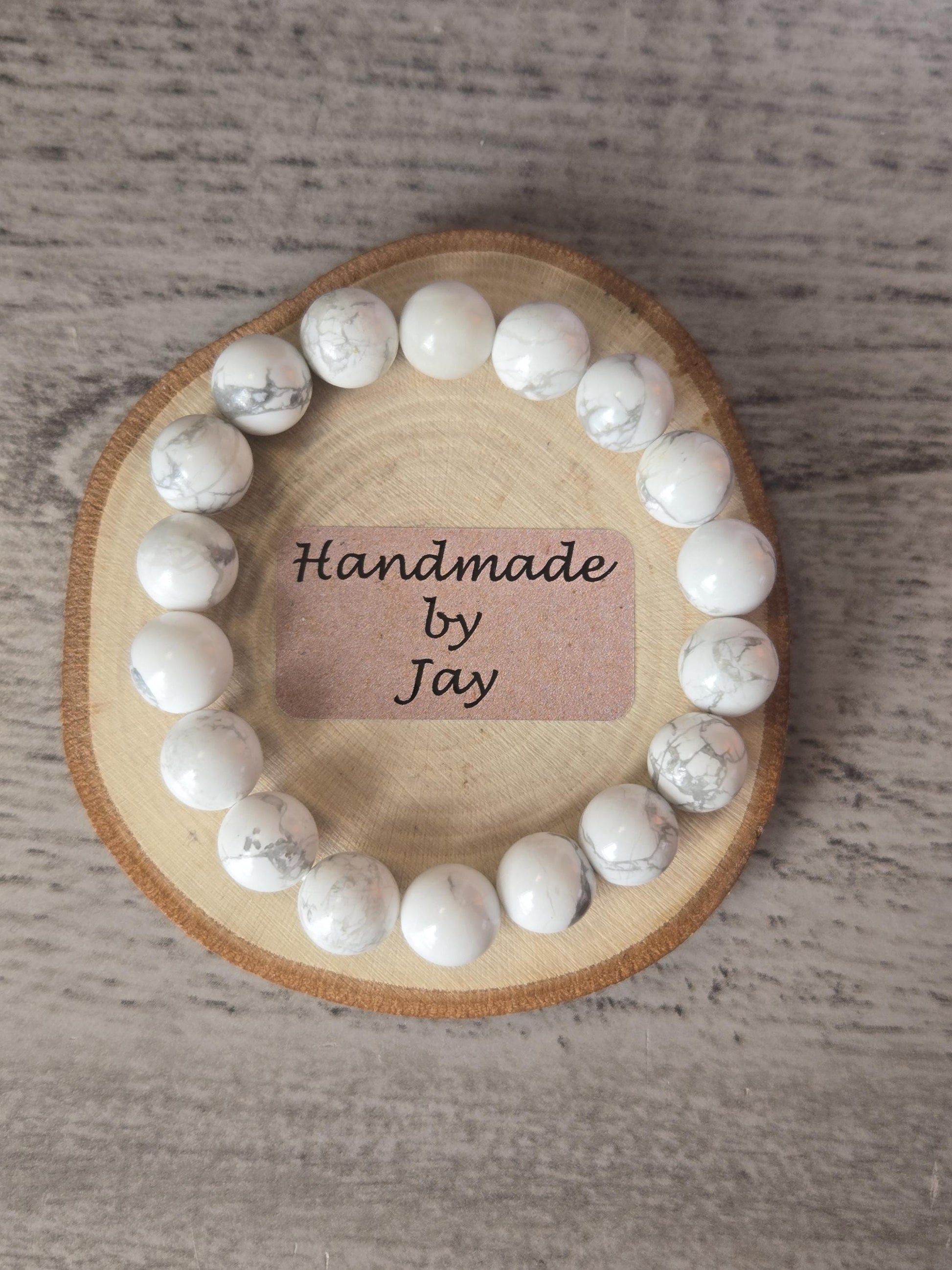 Handmade with 10mm White Howlite ADHD, Anxiety/ Stress Relief Crystal Gemstone beads Beaded Bracelet which comes in free Gift Bag with Selenite Stick and Crystal Information Card.