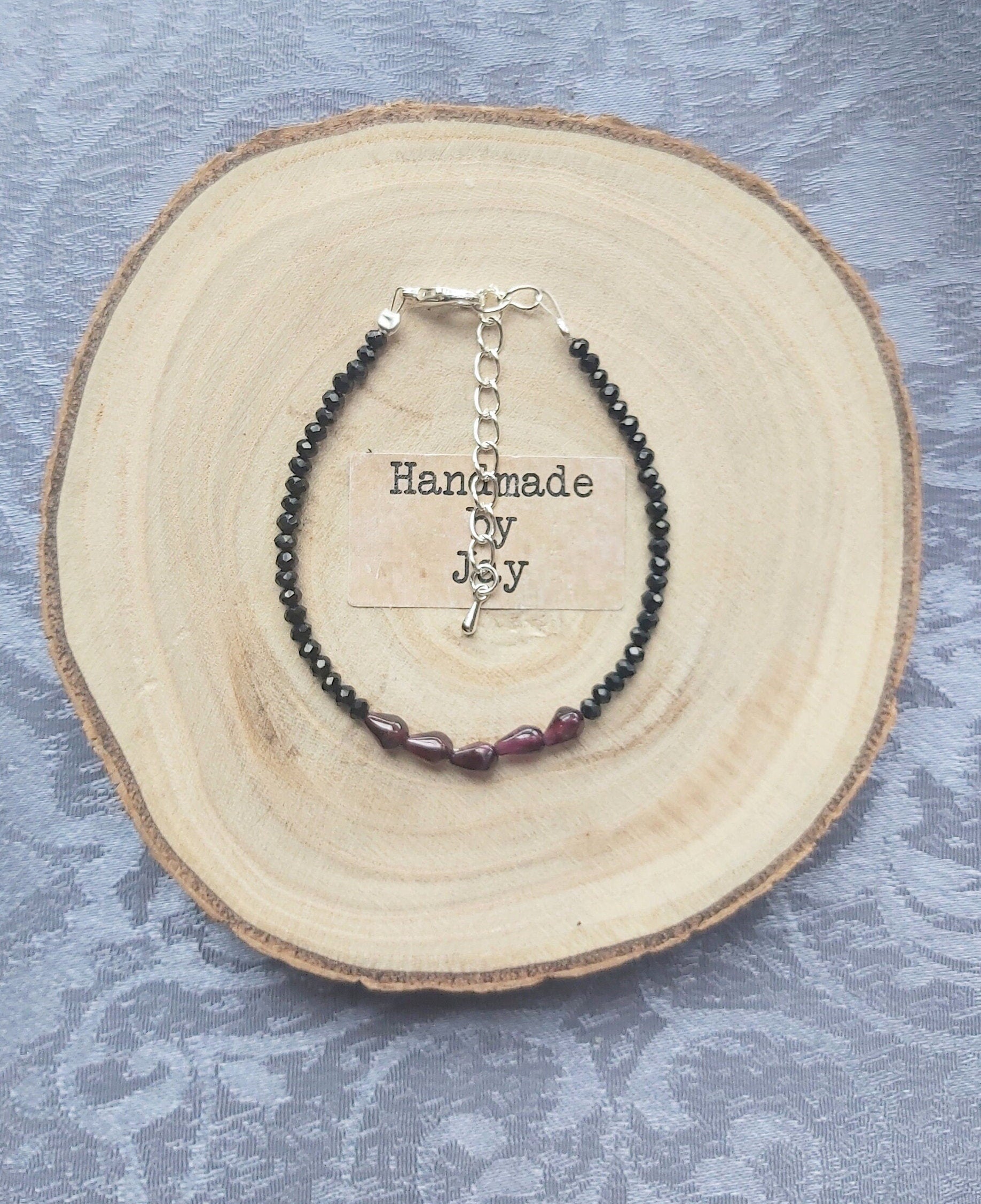 2mm Faceted Black Tourmaline & Natural Garnet for Grounding and Protection Crystal Gemstone Beaded 925 Sterling Silver Bracelet