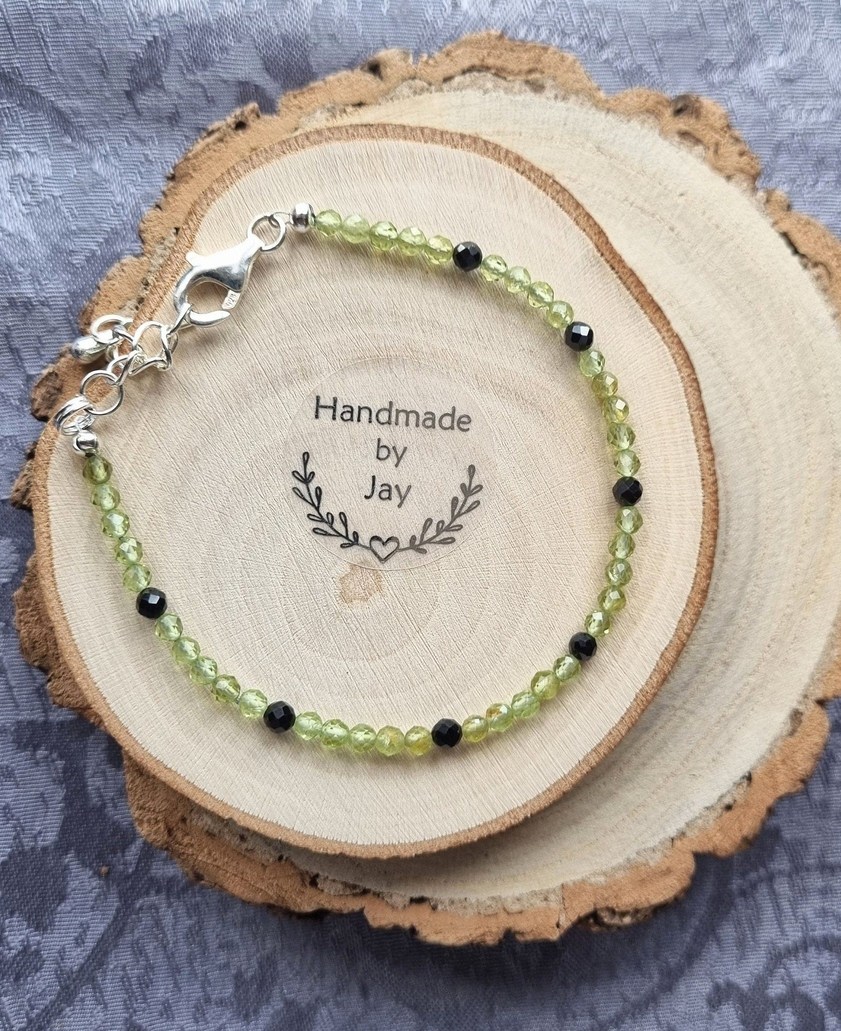 PERIDOT AND SPINEL FOR IBS, ANXIETY AND DIGESTIVE ISSUES SUPPORT CRYSTAL BEADED 925 STERLING SILVER BRACELET SOLAR PLEXUS AND HEART CHAKRA.