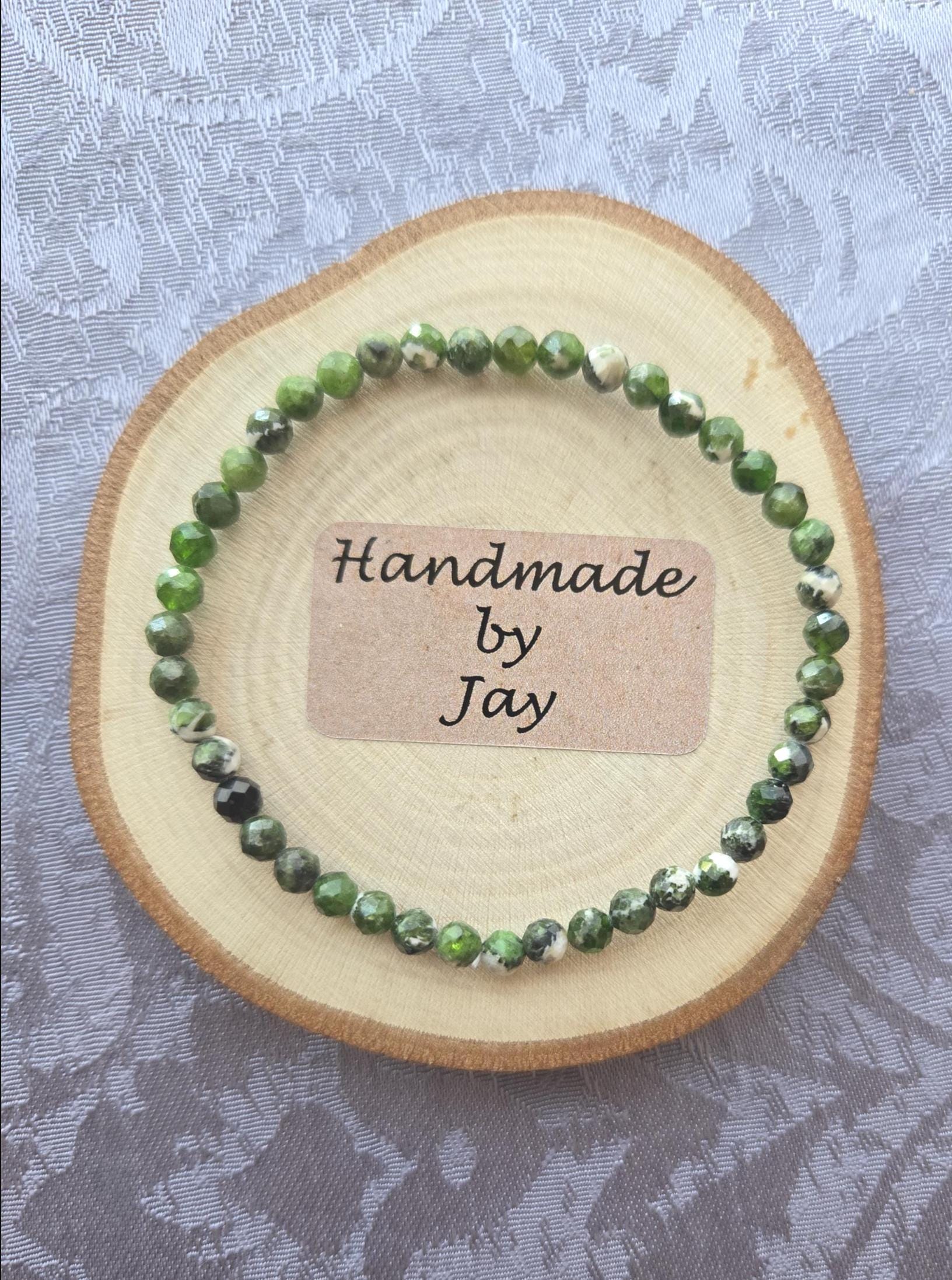 4mm Diopside Crystal Bracelet: Faceted Gemstone Beaded Healing Jewelry