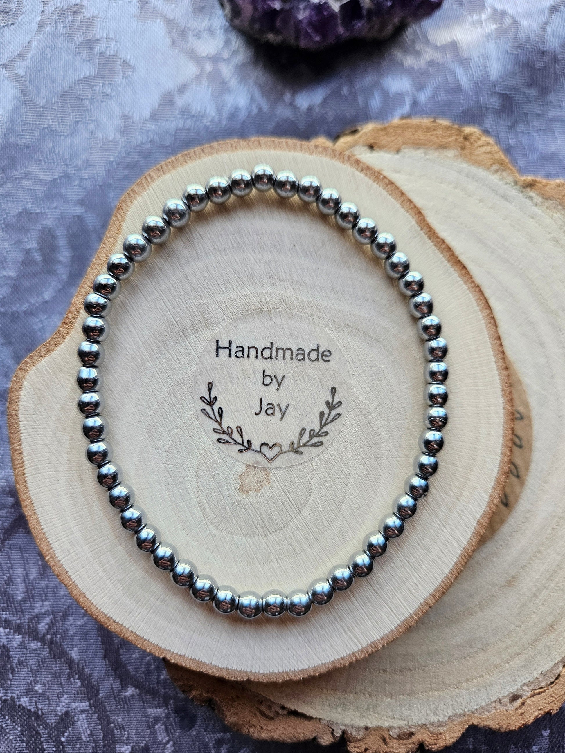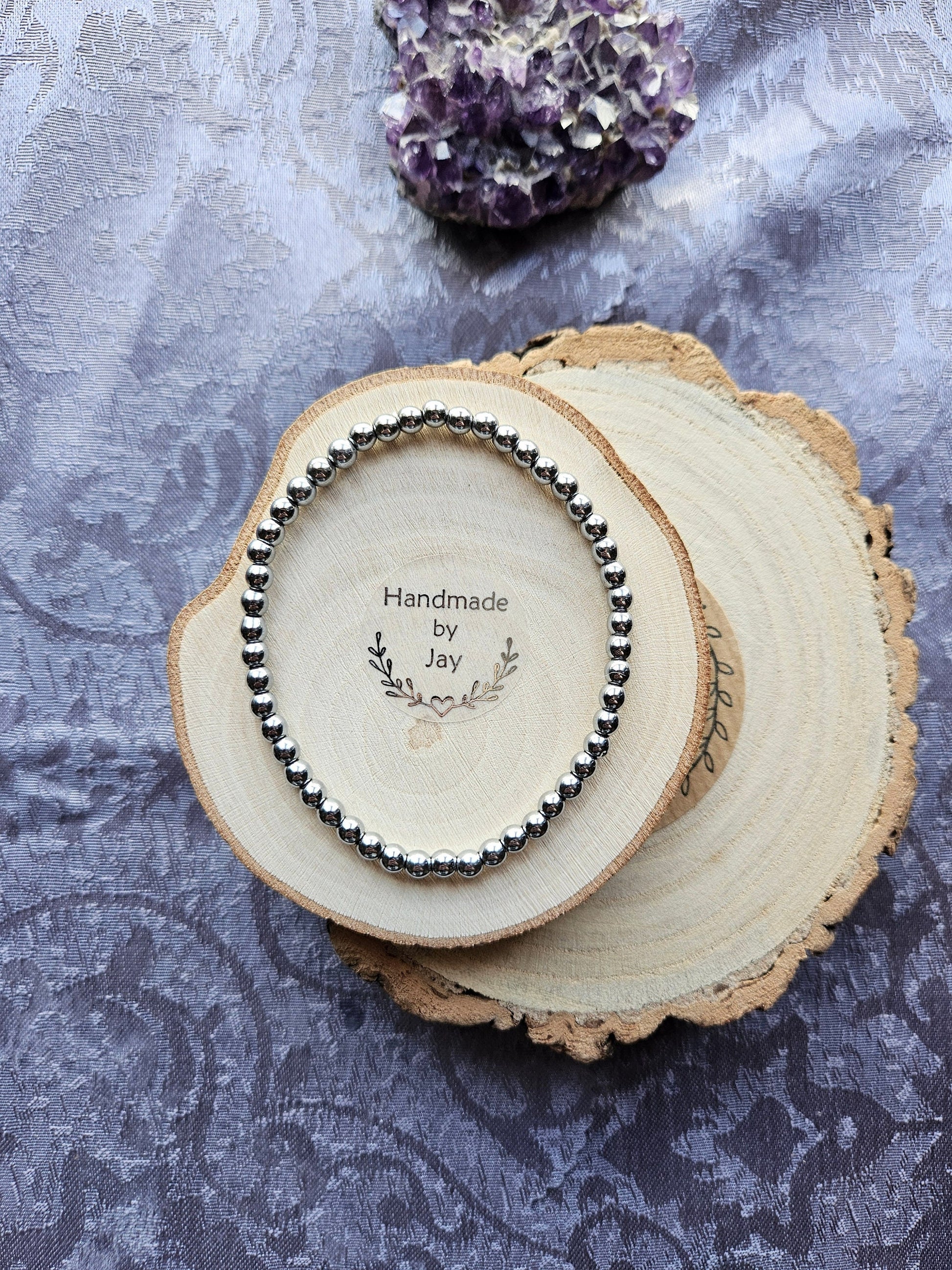 4mm Silver Hematite Gemstone Crystal Beaded Bracelet and these Come in a free Velvet Gift Bag with Crystal Information Card.