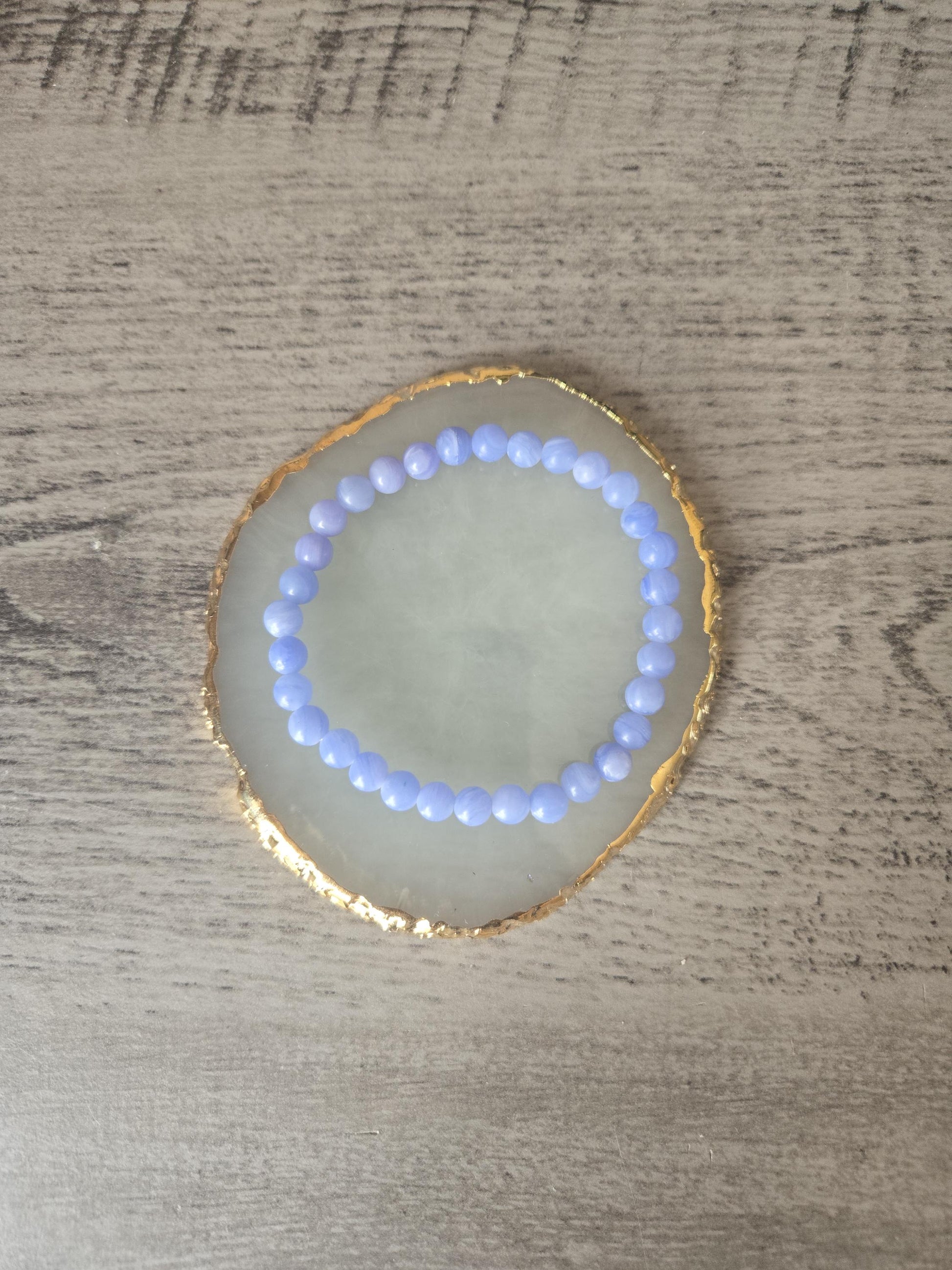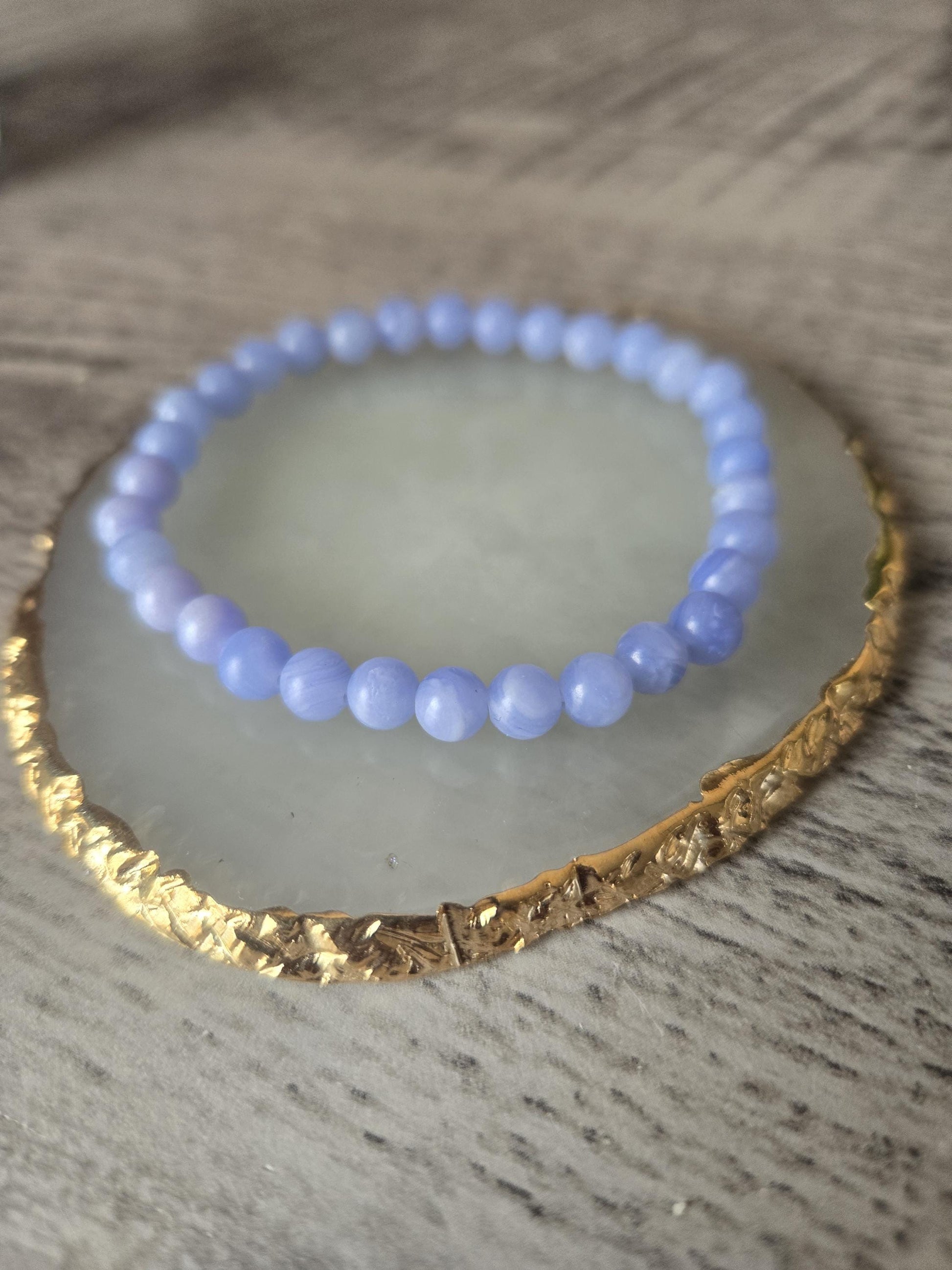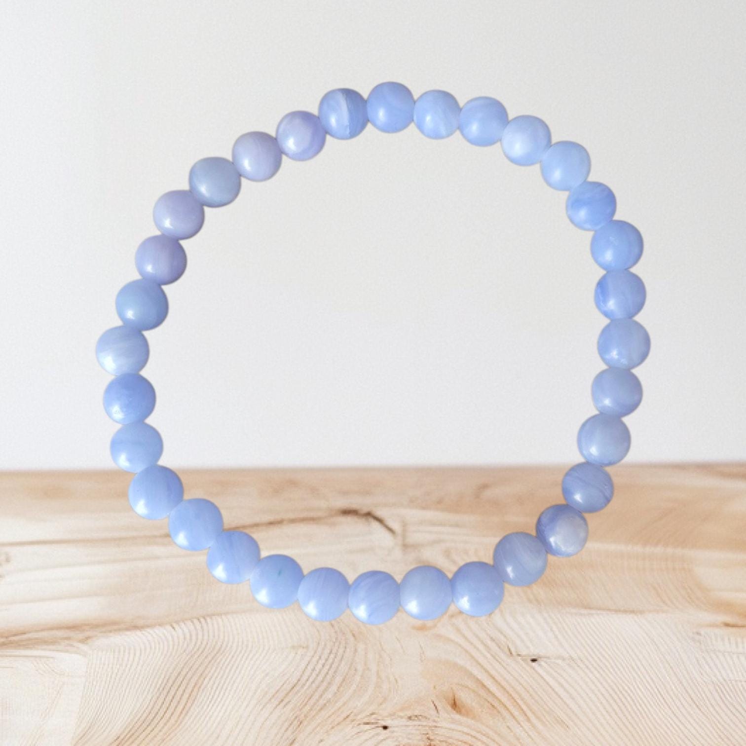 Handmade Natural 6mm Natural Blue Lace Agate Crystal Gemstone Beaded Bracelet Comes in a Velvet Gift Bag with a Crystal Information Card.