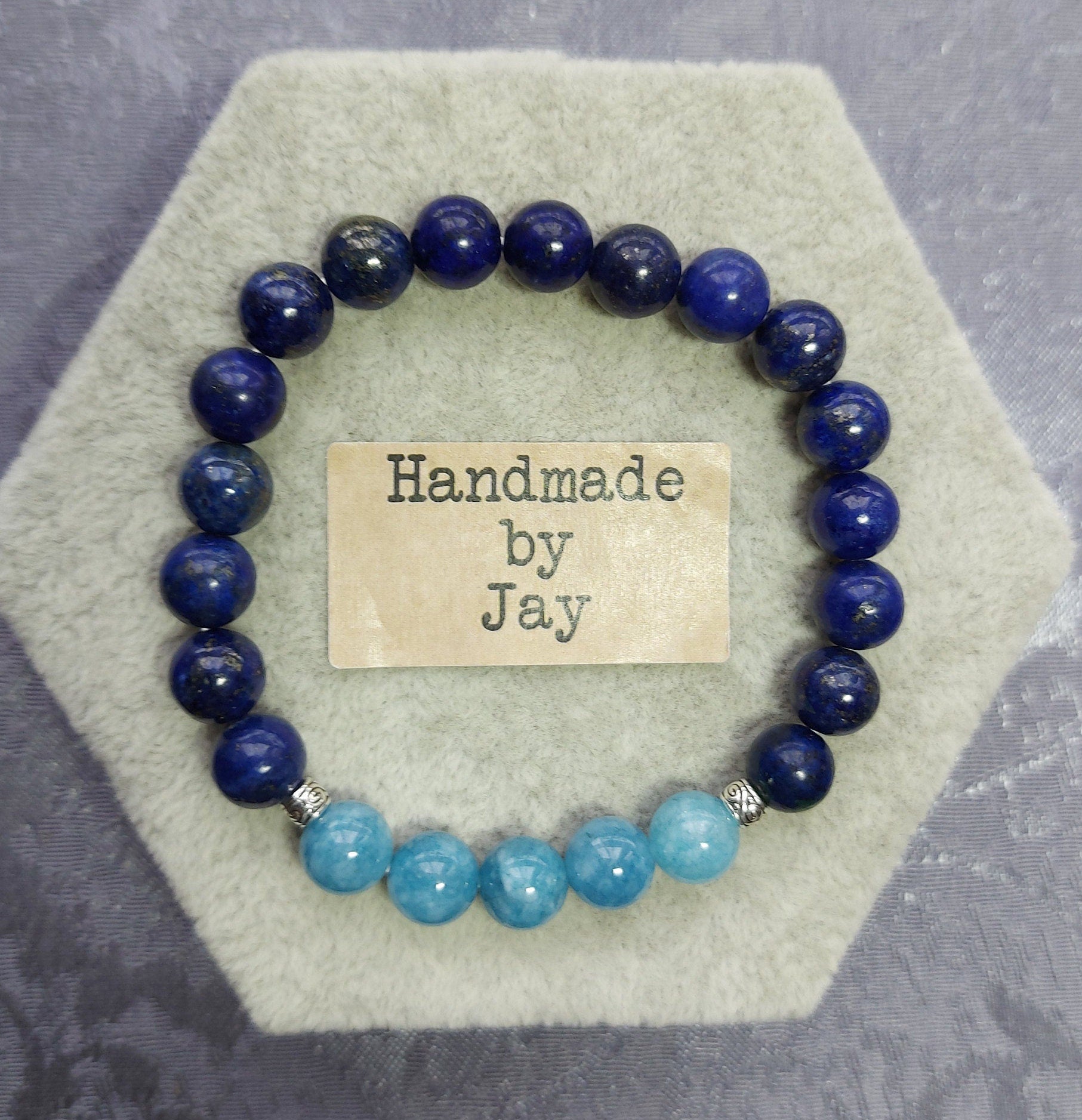 8mm Natural Lapis Lazuli & Aquamarine for Insomnia, Immune System, Protective and Migraines, Crystal Beaded Throat Chakra Bracelet