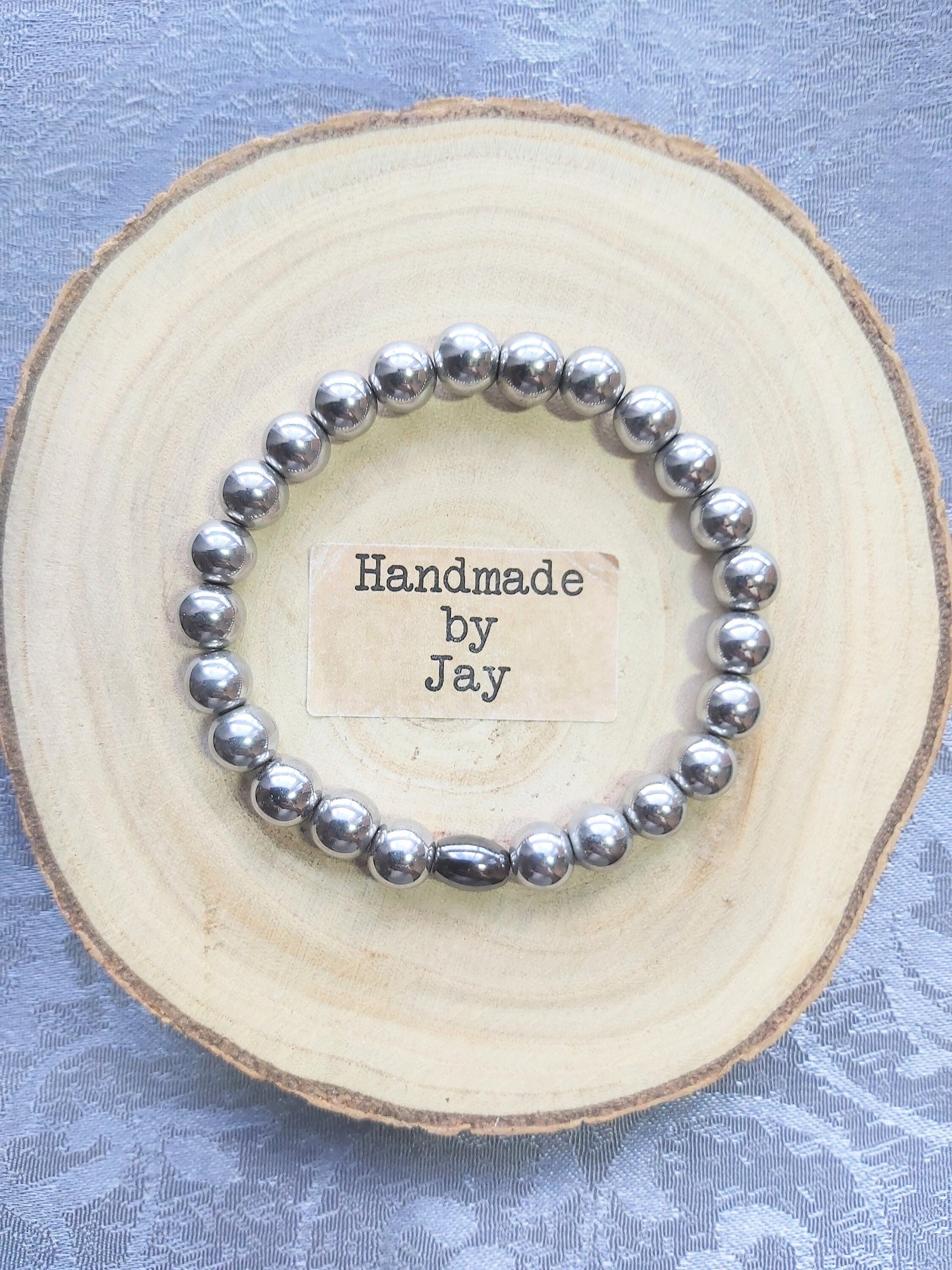 8mm Silver Hematite & Lodestone Crystal Gemstone Beaded Bracelet