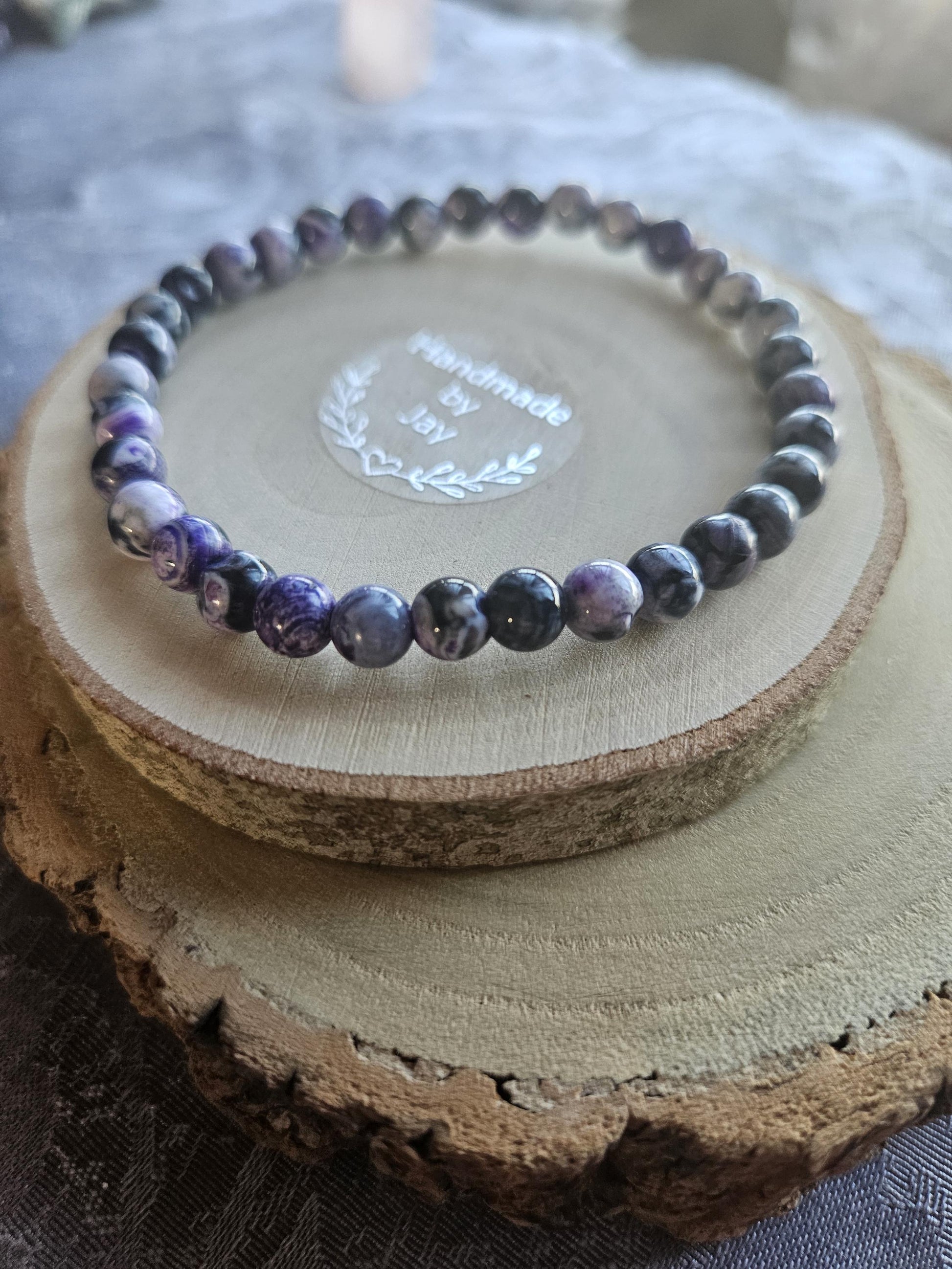 5MM CRYSTAL PURPLE FLAME AGATE GEMSTONE BRACELET.