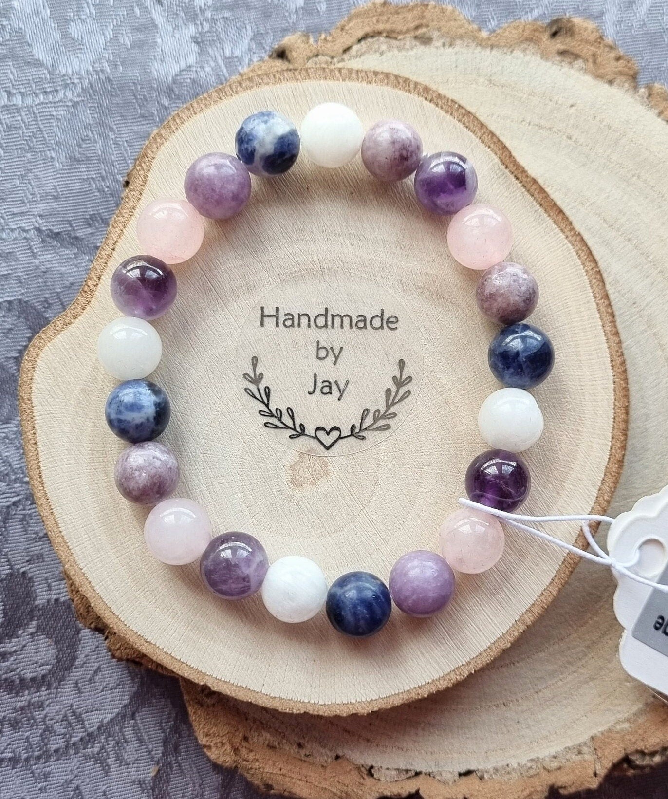 AMETHYST, ROSE QUARTZ, SODALITE, MOONSTONE and LEPIDOLITE are a special combination of stones said to aid those living with Anxiety & Panic Attacks.