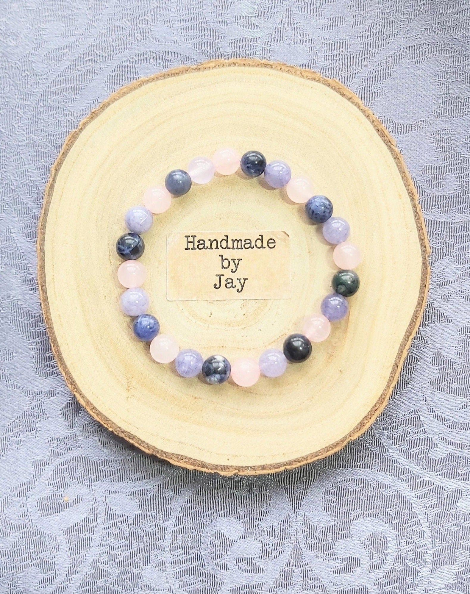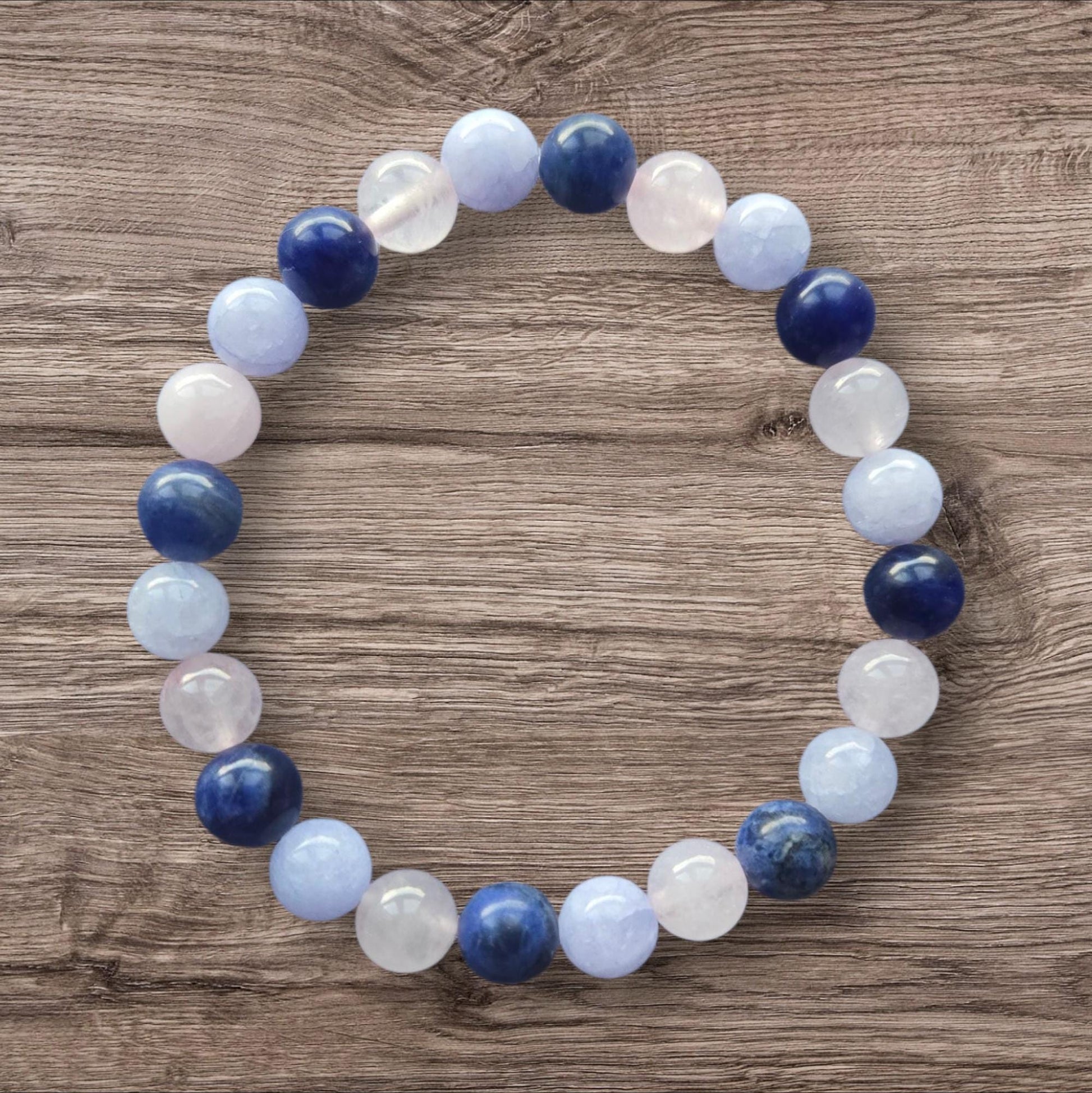 Crystal Healing Bracelet: Angelite, Sodalite, Rose Quartz Gemstones