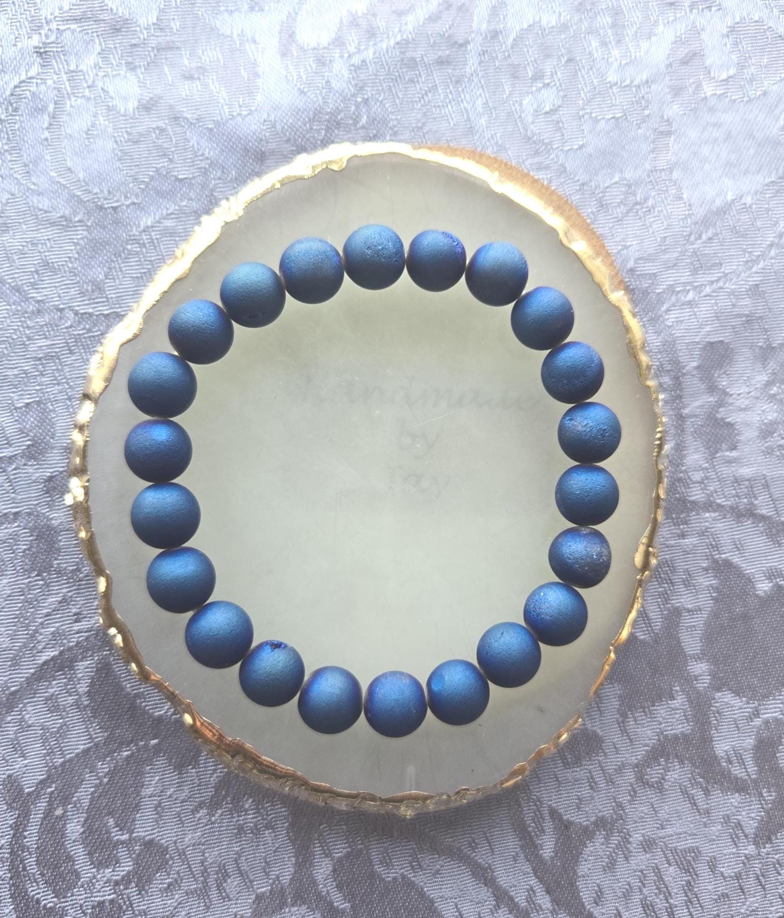 Dark Blue Druzy Onyx Bracelet: 8mm Crystal Healing Gemstone