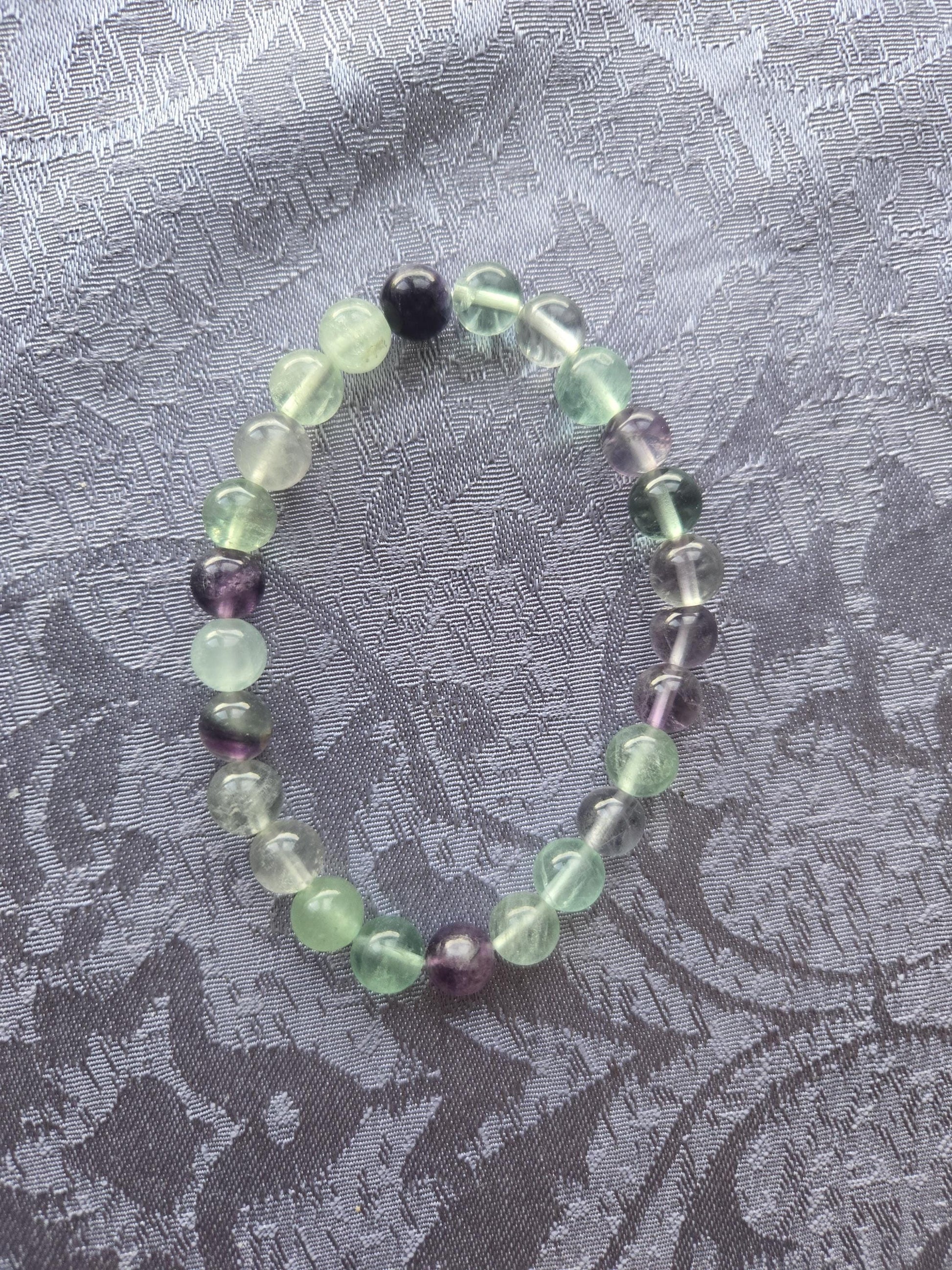8MM RAINBOW FLUORITE TO SUPPORT DIZZINESS, IMMUNE SYSTEM, BALANCE ISSUES & NERVE PAIN CRYSTAL HEALING GEMSTONE BEADED ELASTICATED BRACELET