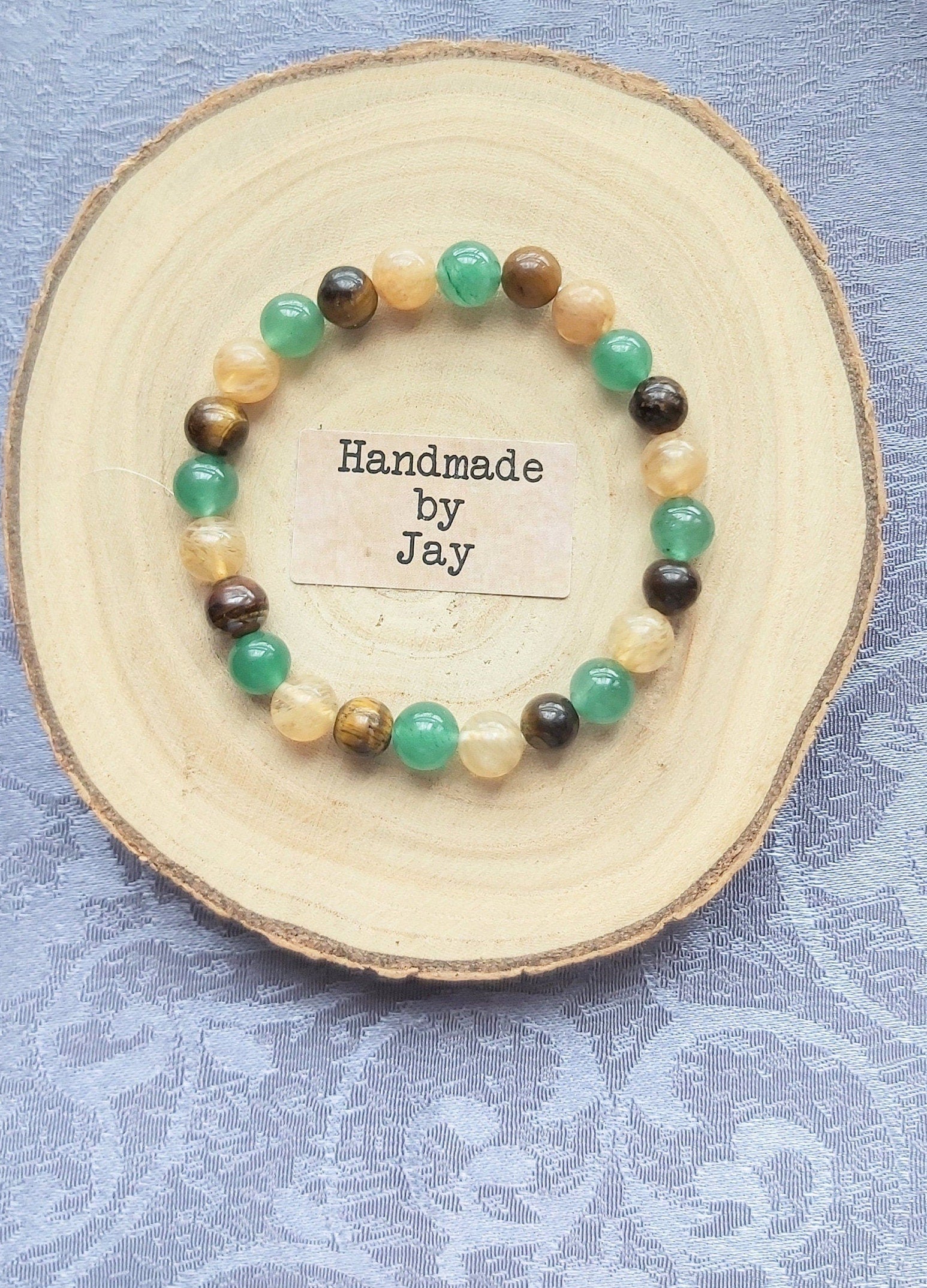 8MM GOOD LUCK PROSPERITY AND ABUNDANCE CITRINE, JADE AND TIGERS EYE CRYSTAL HEALING BRACELET COMES IN A FREE ORGANZA OR VELVET GIFT BAG.