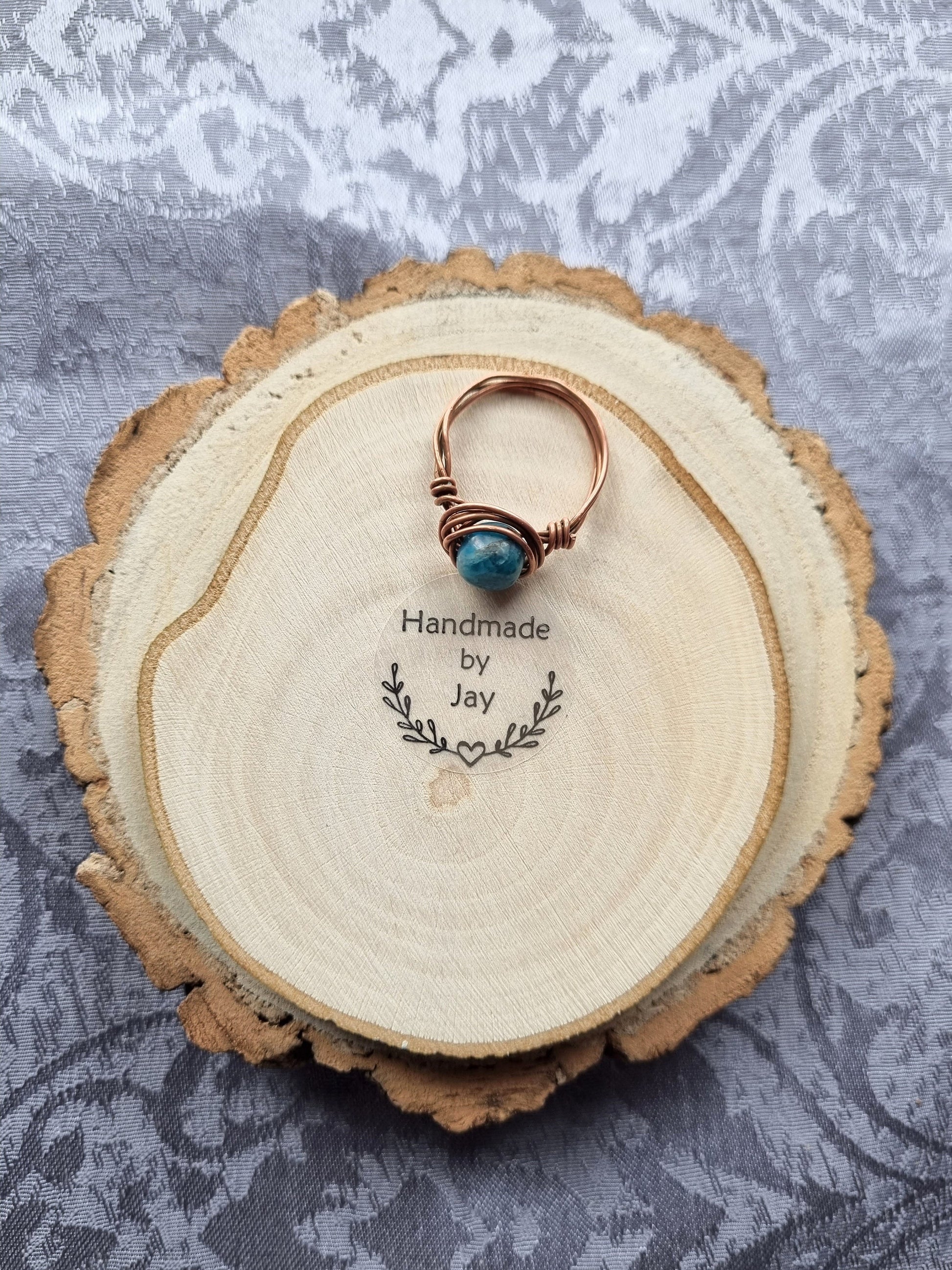 Handmade Natural Apatite Crystal Gemstone Ring also made with non-tarnishing Copper or non-tarnishing Silver.