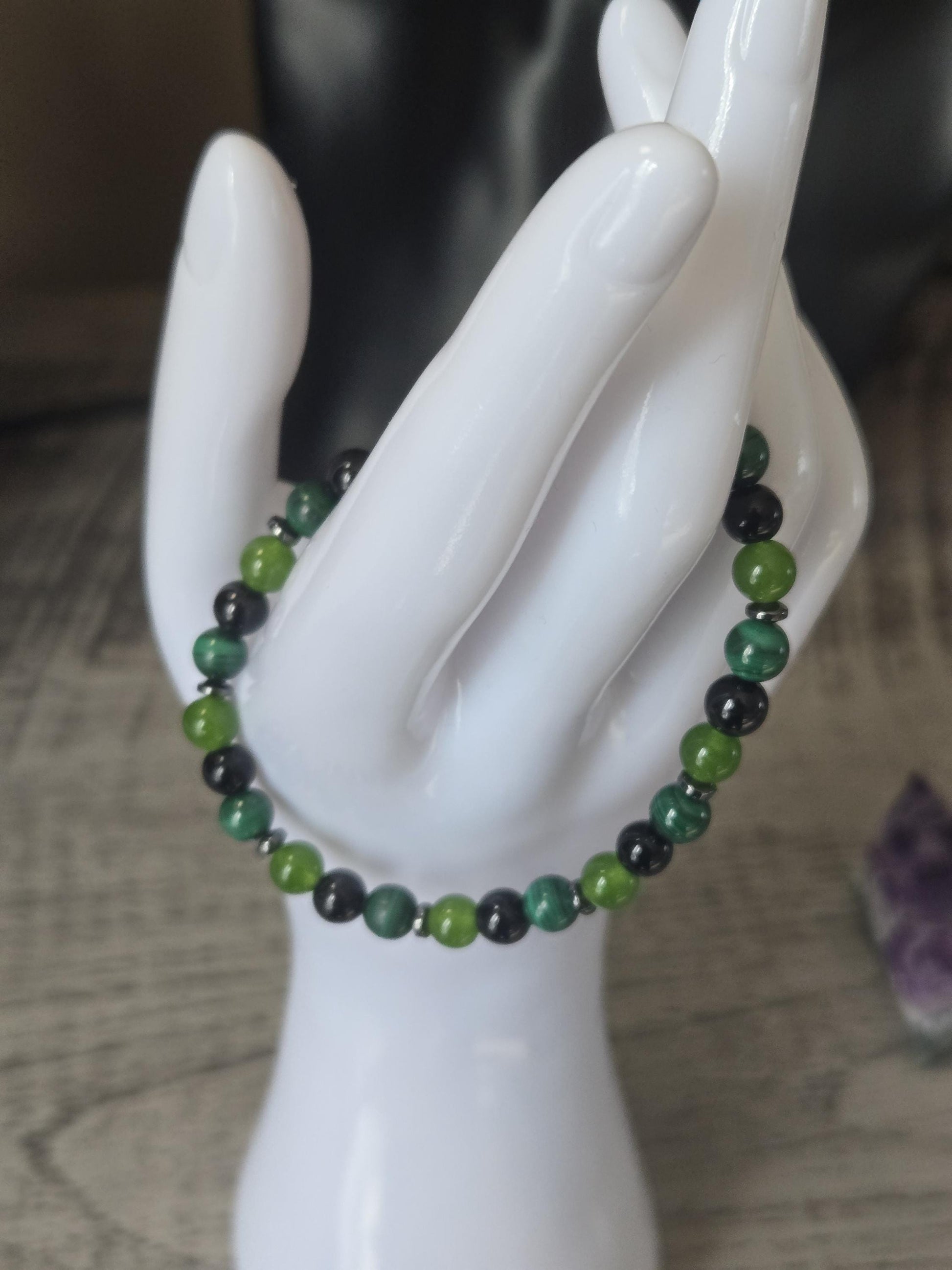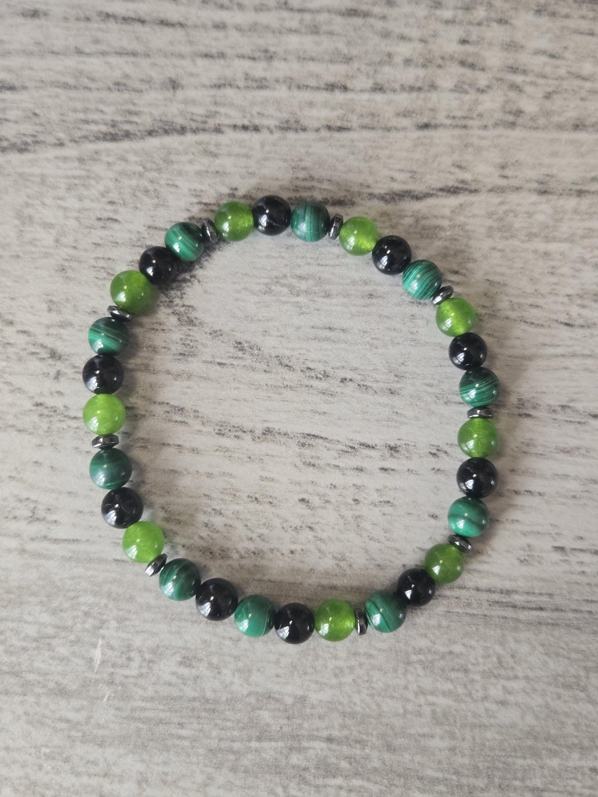 Handmade Jade, Malachite & Onyx Gemstone Bracelet: Grounding, Protection