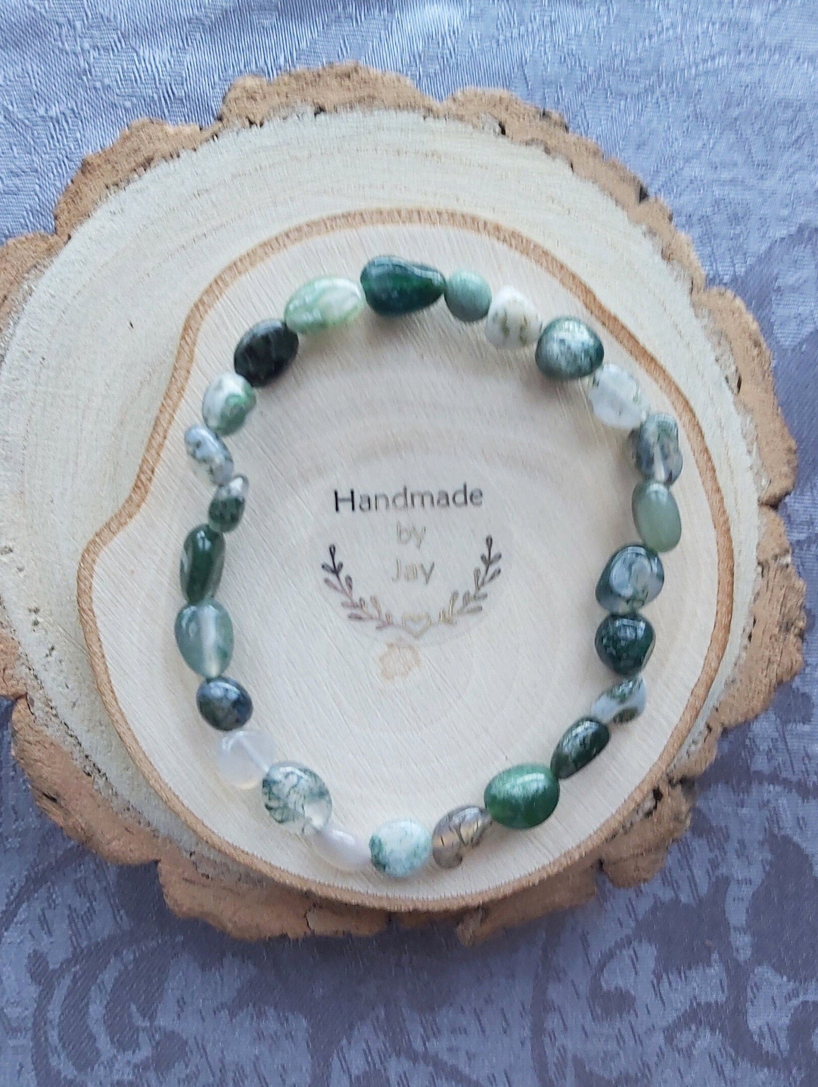 Handmade Moss Agate Crystal Healing Bracelet: Gemstone Detox