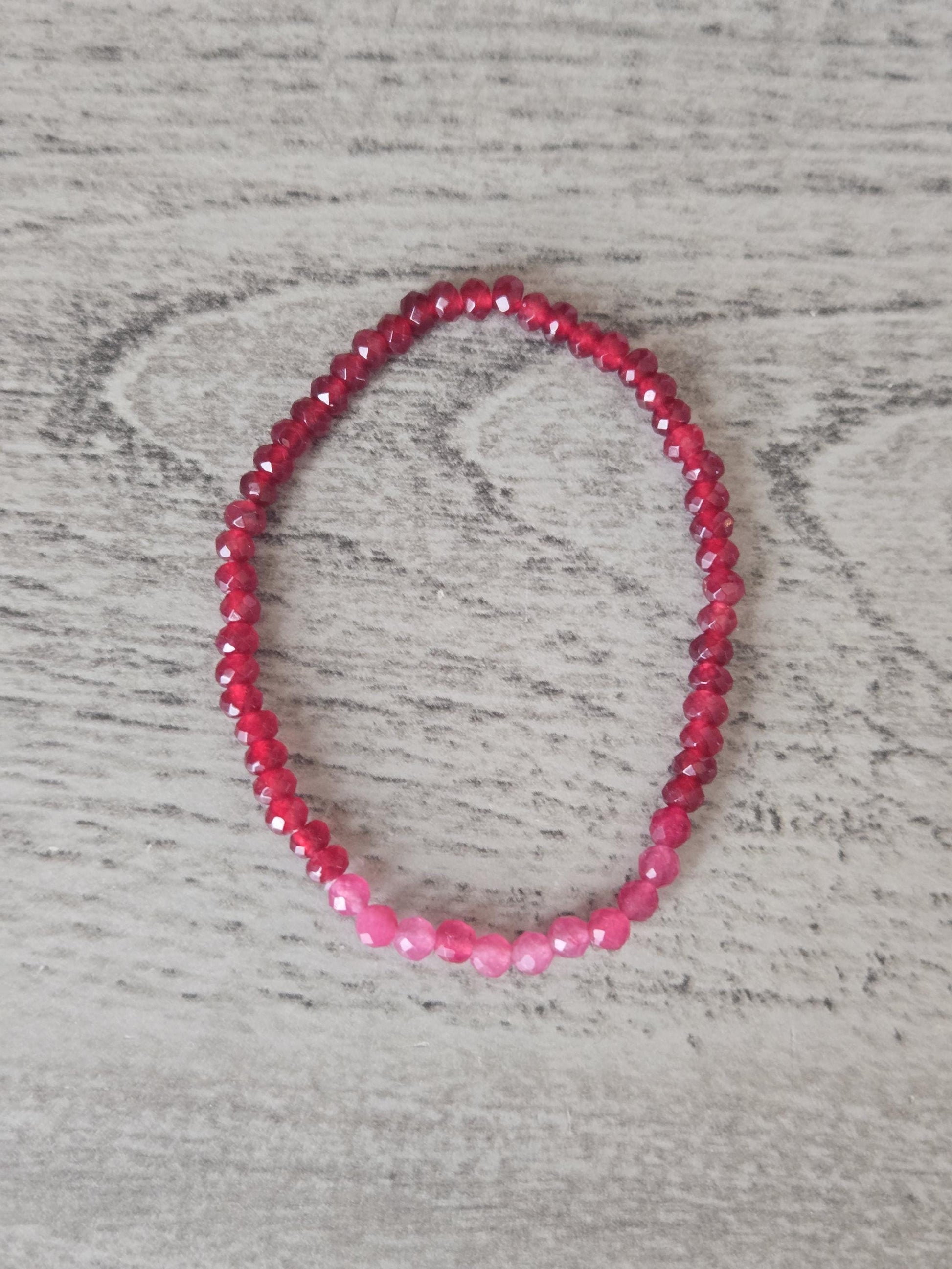 Ruby and Pink Tourmaline Faceted Crystal Gemstone Beaded Bracelet