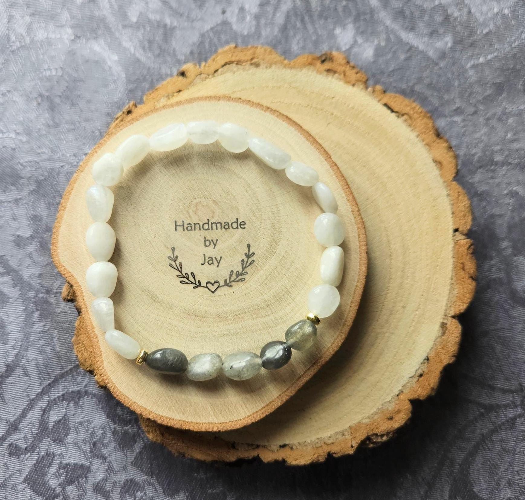 Moonstone and Labradorite Bracelet: Blue Flash Crystal Gemstone