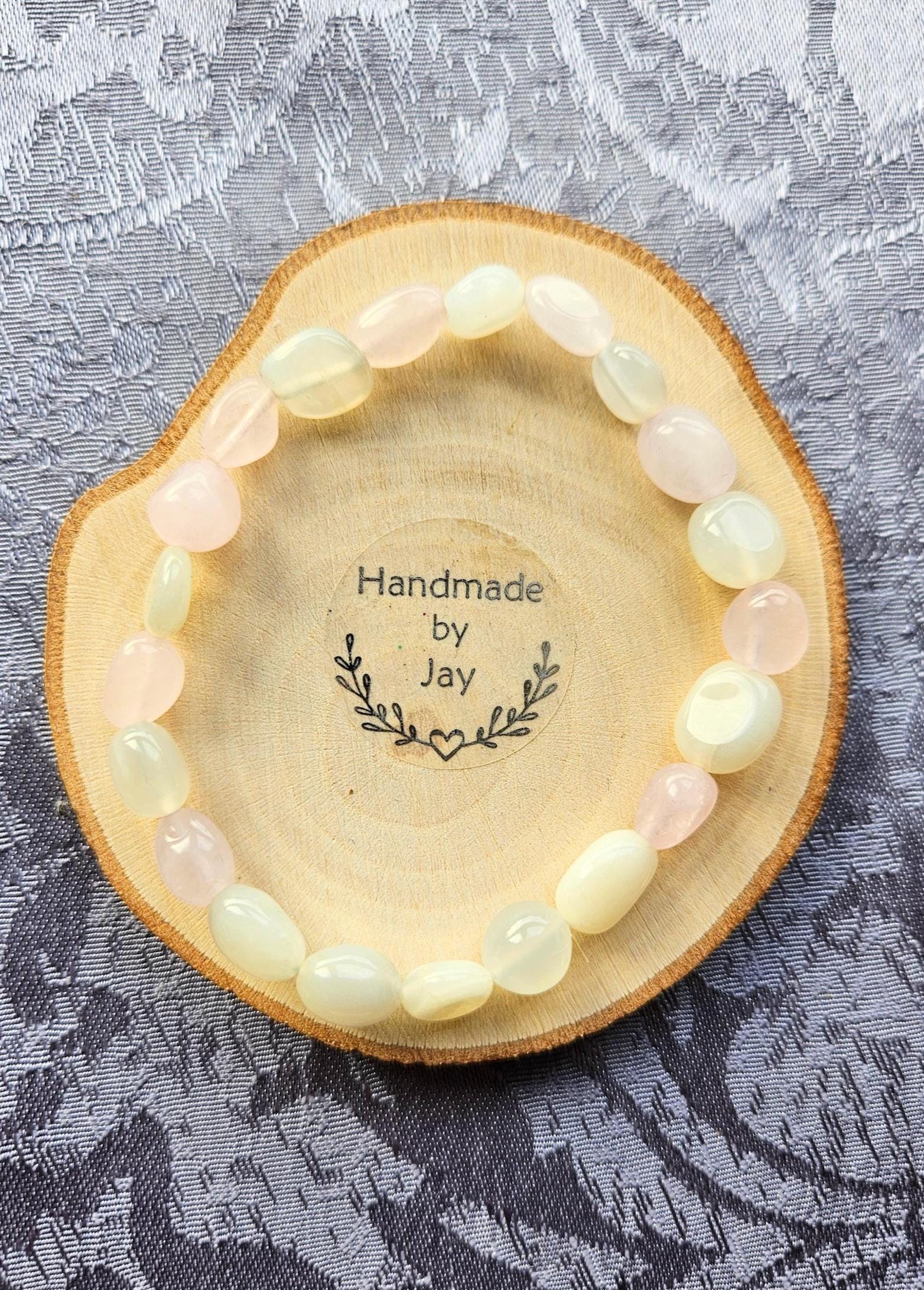 Rose Quartz & Moonstone Crystal Beaded Bracelet: Calming Chakra Jewelry