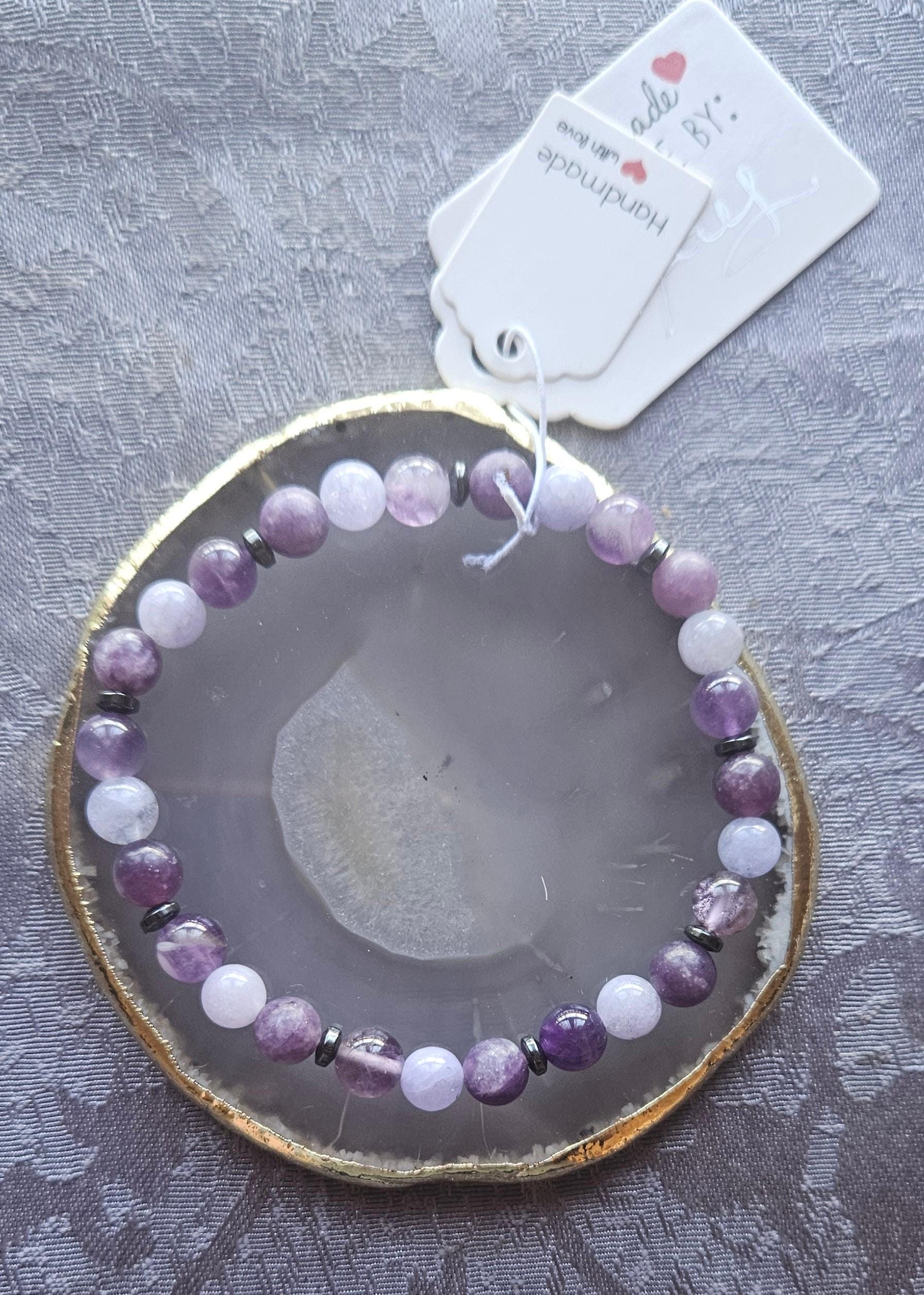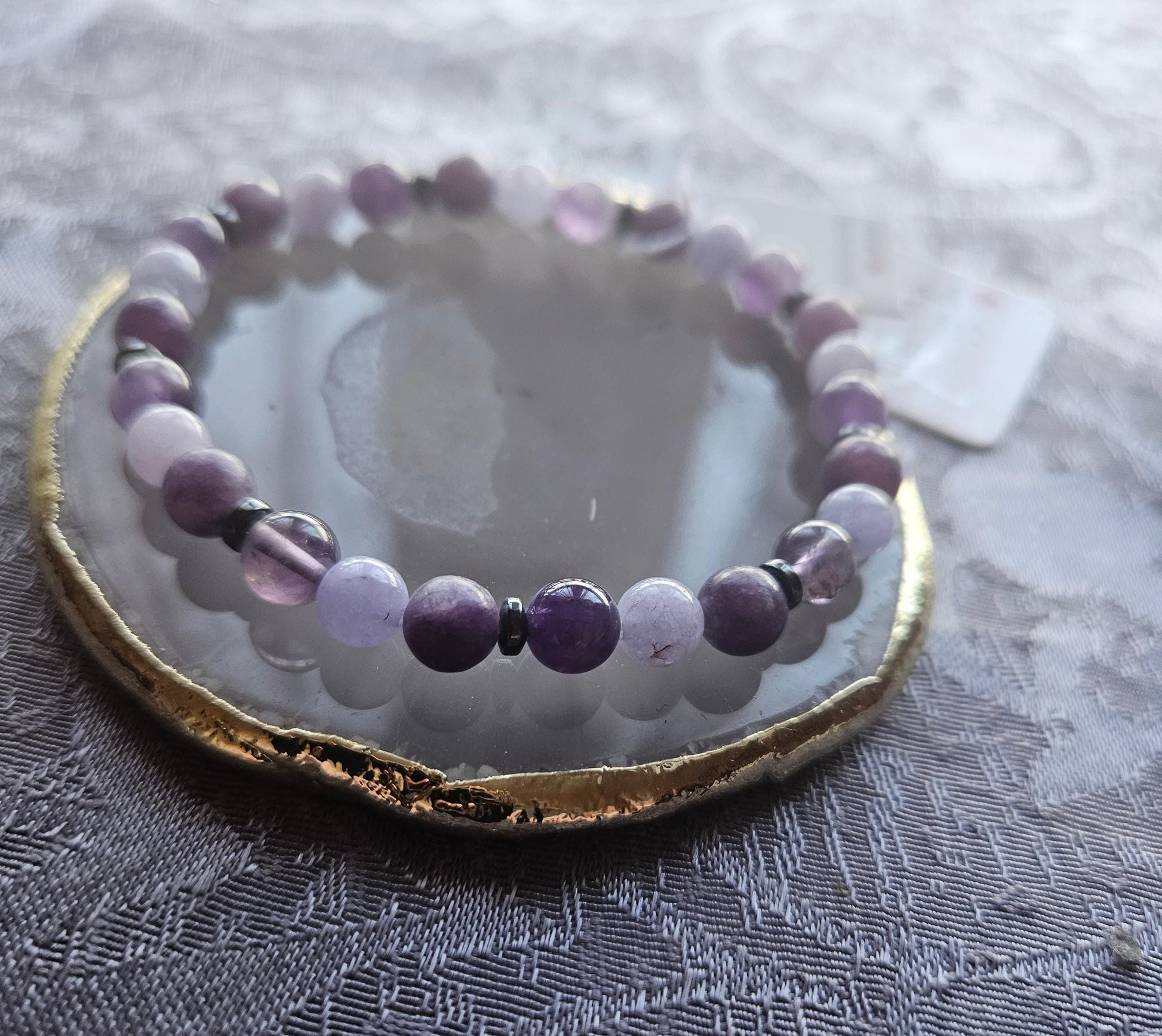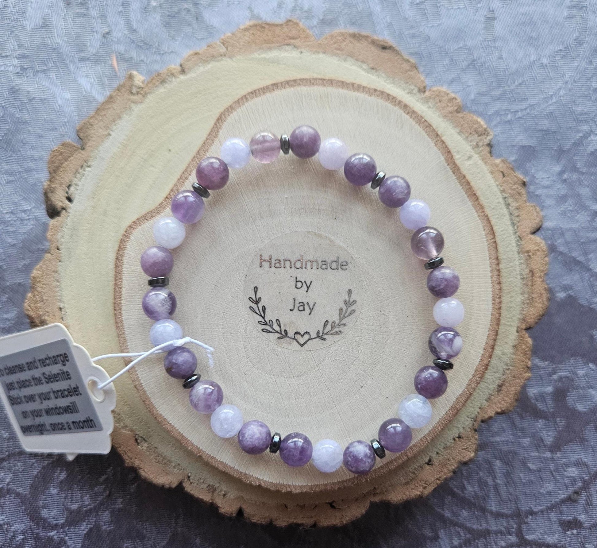 Soothing, Calming, Empathy, Anxiety & Stress Lepidolite, Amethyst and Angelite Crystal Gemstone Beaded Bracelet