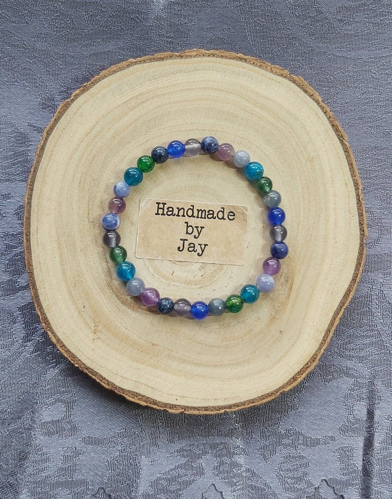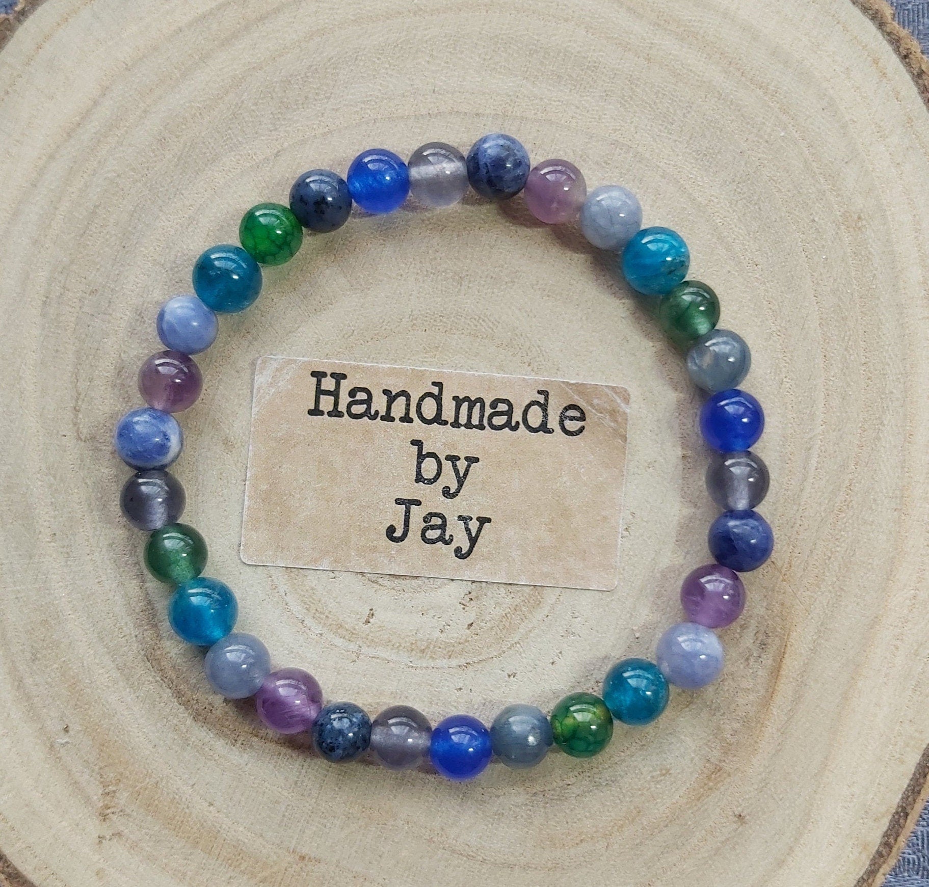 6mm Kyanite, Apatite, Amethyst, Iolite, Green Tourmaline Crystal Gemstone Beaded Bracelet